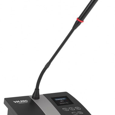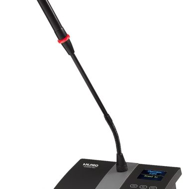 سیستم کنفرانس M.PRO مدل V1 یک سیستم دیجیتال حرفه‌ای با قابلیت رای‌گیری، کنترل خودکار میکروفون و اتصال به دوربین است که برای جلسات و همایش‌های رسمی با صدای شفاف و مدیریت آسان طراحی شده است.