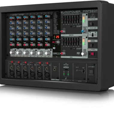 پاور میکسر مدل PMP560M مارک بهرینگر یک پاور میکسر بی نظیر و کوچک با کیفیت صدای عالی و خروجی قدرتمند 500وات و آمپلی فایر داخلی کلاسD دارای عملکرد صوتی فوق العاده، یک گزینه بسیار خوب برای اجرای زنده می باشد. این پاور میکسر برای پخش موسیقی و استفاده در فضاهای داخلی کوچک مانند نمازخانه ها ، پلاتوهای تئاتر، هیئت های خانگی و جلسات مذهبی و سخنرانی بسیار مناسب بوده و با 6 کانال ورودی یک گزینه مناسب برای تکنوازی ها، سخنرانی ها و مداحلی و اماکن مذهبی به حساب می آید.